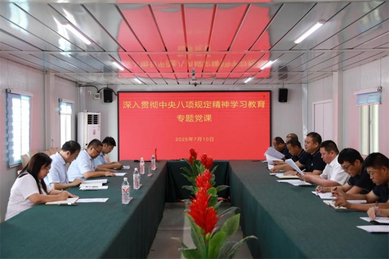 7月10日,公司黨委委員、職工董事、工會主席于光到工程公司慶章高速二標(biāo)段項(xiàng)目調(diào)研并講授深入貫徹中央八項(xiàng)規(guī)定精神學(xué)習(xí)教育專題黨課。