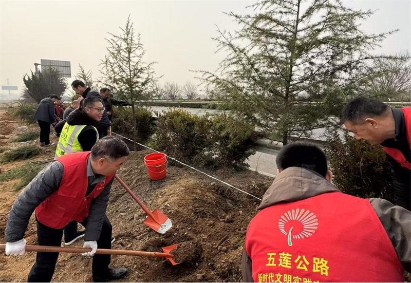 3月12日,正值植樹節(jié),董梁高速一標(biāo)段項(xiàng)目部聯(lián)合五蓮縣公路事業(yè)發(fā)展中心,在叩官鎮(zhèn)G342國道旁開展“黨旗領(lǐng)航植新綠 合力共建筑新景”植樹活動(dòng)。